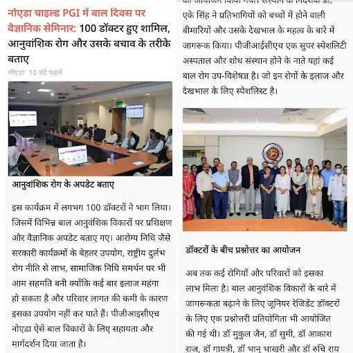 Scientific symposium was organised by Medical Genetics department at PGICH, Noida on 23rd July 2022. The theme of the symposium was Neurogenetic Disorders. The Medical Genetics department of the Institute organizes such scientific sessions for doctors across the country, every 3months which involves expert speakers in the field. The invited speakers from the field of Medical Genetics included Dr Poonam Gambhir (Kanpur), Dr. Moni Bhatia (Rohtak), Dr. Meenal Aggarwal (Director, Medgenome Labs, Bangalore), Dr. Shivani Mishra (Dhanbad) and Dr. Ravneet Kaur (Chandigarh). Read More